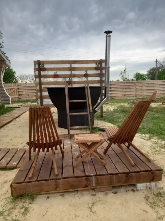 Все есть, бельё, халаты, гигиенические принадлежности, посуда, тв смарт, фен, зона барбекю, банный чан, костровая зона, батут, гамак, большая терраса, парковка, сеновал, перина, как у бабушки в деревне.