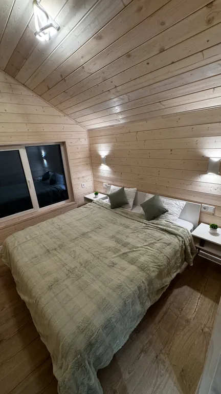 - Двуспальная кровать king size с ортопедическим матрасом 180*200 см в спальне на 2 этаже;