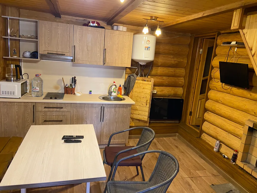-Дом со всеми удобствами — кухня, баня на дровах (настоящий релакс! ), а на втором этаже две комфортные комнаты для отдыха.